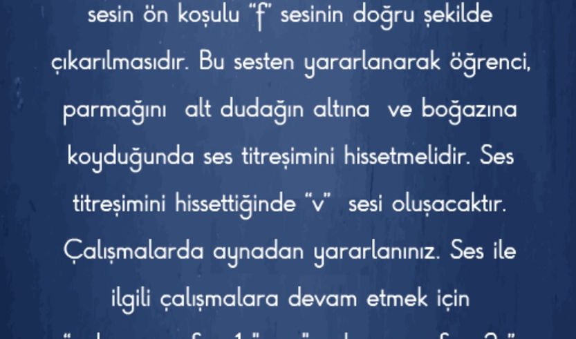 Bu program konuşma bozuklukları çalışmalarında bir ilk olma özelliği taşımaktadır. Türkçe'de bulunan 29 sesin ağızdan çıkış şeklini içermektedir. Ağzın önden görünümü video şeklinde , ağız içi ise animasyon ile hareketlendirilerek yandan görünüm biçiminde verilmiştir. Ses çalışmalarını sesi içeren hece ve görselli kelimeler takip etmektedir.